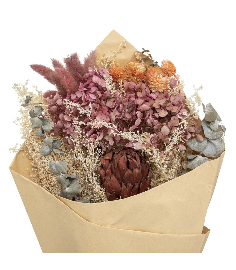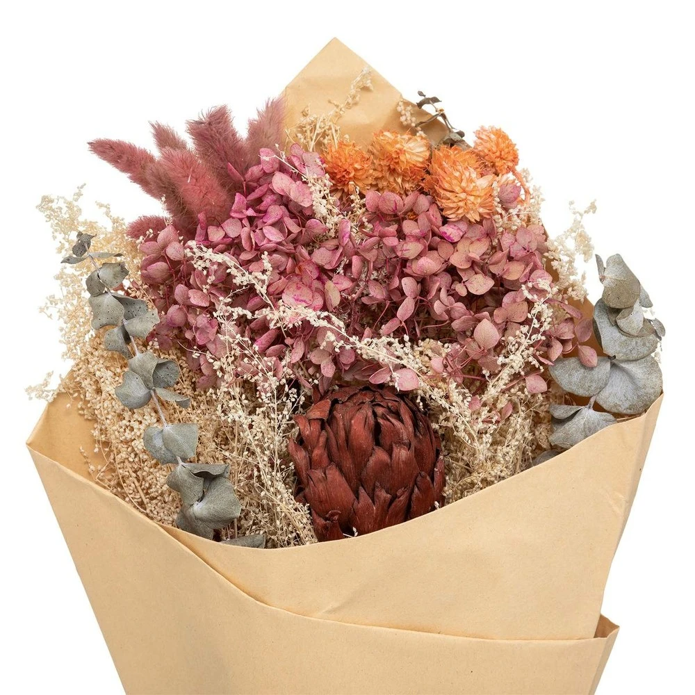matière du bouquet : plantes séchées ( composé de roses naturelles séchées et de plusieurs autres variétés de plantes ) –