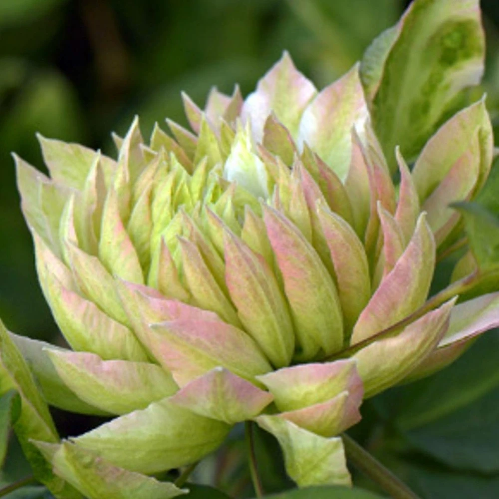 cette variété de clématites récemment sélectionnée pour sa floraison spectaculaire verte et blanche sera parfaite pour les emplacements ombragés ou mi-ombragés du jardin. Une variété originaire du japon. Les pétales se couvriront de quelques taches roses lors de sa floraison de printemps ou d’automne.